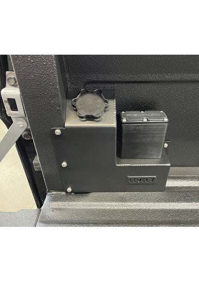 The Level 7 Motorsports Bed side Fuel Fill is a great solution for those looking to add a custom yet extremely functional fuel fill for their rear mounted fuel tank. After years of building trucks with all sorts of different fuel fill styles this has become our go to solution of choice. With bed floor mounted fills you can run the chance of water getting in your tank if you don't have a good seal or if it pools around the filler. Also, if you carry things in the bed you have to move them around to get to your fill. Our beside fill addresses both these potential issues while also allowing full fuel flow fill ups through proper venting. This bed side fuel fill is designed to work with 67-72 C10 pickups with a steel bed floor and can incorporate an optional dual chamber breather canister.