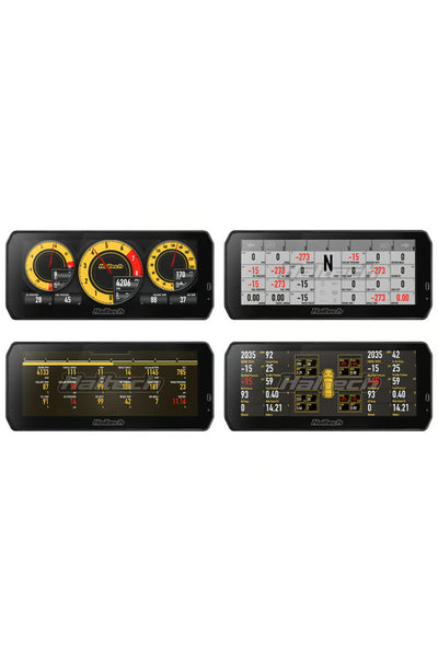 Includes: 1 x Haltech uC-10 Digital Dash, 1 x 34P connector - same as HT-131001, 1 x Haltech DTM4 to DTM4 CAN cable 3.0m (118in), 1 x USB-C cable, 3 x M5 x 8mm mounting screws, 2 x Momentary switches, pre-terminated 800mm 22AWG Cable, 1 x Glass Mount Wi-Fi antenna (Wi-Fi functionality will be made available with future firmware update), 1 x Haltech fabric keytag, Quick Start Guide, Haltech stickers.