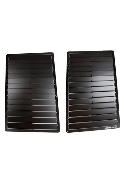 We are proud to offer hood Louvers for your OBS truck! The primary object of these louvers is to decrease under hood pressure and allow the front of the truck to stay closer to the ground at high speeds. The front of your truck is high off the ground and very flat compared to a sports car. At-speed air is forced through the radiator and pressurizes the engine bay. The air is forced to escape out from under the truck thus creating lift. These louvers allow the air pressure to escape up out of the hood and mix with air traveling over the hood and truck. This keeps the front of the truck and hood more stable.