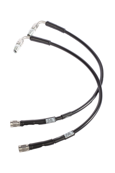 These Level 7 Motorsports Pro Series caliper hoses are designed for use with the No Limit Engineering 4-Link Pro Tech Chassis. These are a simple installation and are highest quality brakes hoses on the market. As with all our Pro Series brake lines, these are made from PTFE lined hose with stainless steel braiding and are finished off with stainless steel hose ends. No other hose on the market offers stainless steel hose ends!