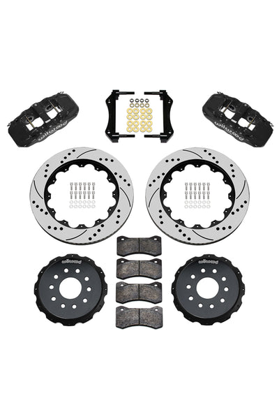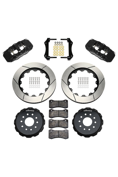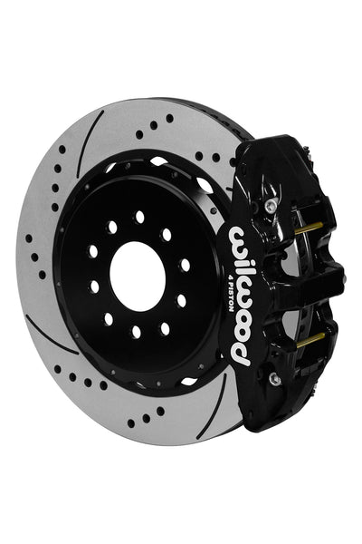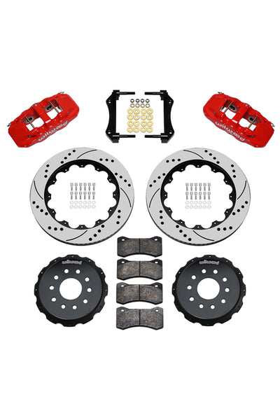 AERO4 Big Brake Rear Axle Kits replace the factory disc brakes and use the OE parking brake assembly as a compliment to front big brake upgrades on late model high performance vehicles. High capacity braking from the AERO4 radial mount calipers, High friction BP compound pads, and oversized 14.00" rotors are matched to the OE master cylinder output, ABS function, and individual vehicle bias requirements. Enhanced brake performance, increased durability, and high-tech style compliment big wheel, tire, and suspension upgrades on customized vehicles and all others with increased brake requirements.