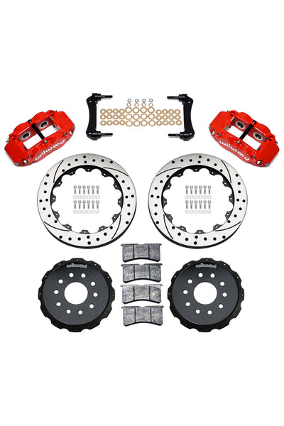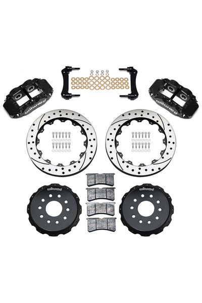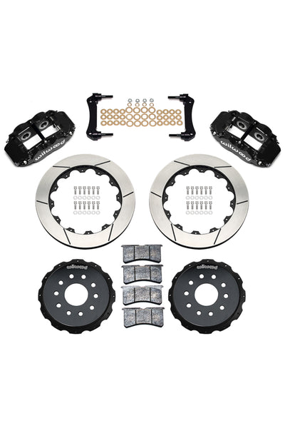 Forged Narrow Superlite 4R four piston calipers are combined with BP-10 compound pads and 13”-14” rotors in this group of big brake kits for custom high performance street and show machines. This group of specialized kits for cars, trucks, and SUV’s retain full use of the OE parking brake, master cylinder output, and ABS where used. FNSL4R rear kits provide complimentary style and performance with 13” and larger front brake upgrades in conjunction with wheel, tire, and suspension upgrades. Optional caliper finishes and rotor designs enable the builder to match style and performance on all applications.